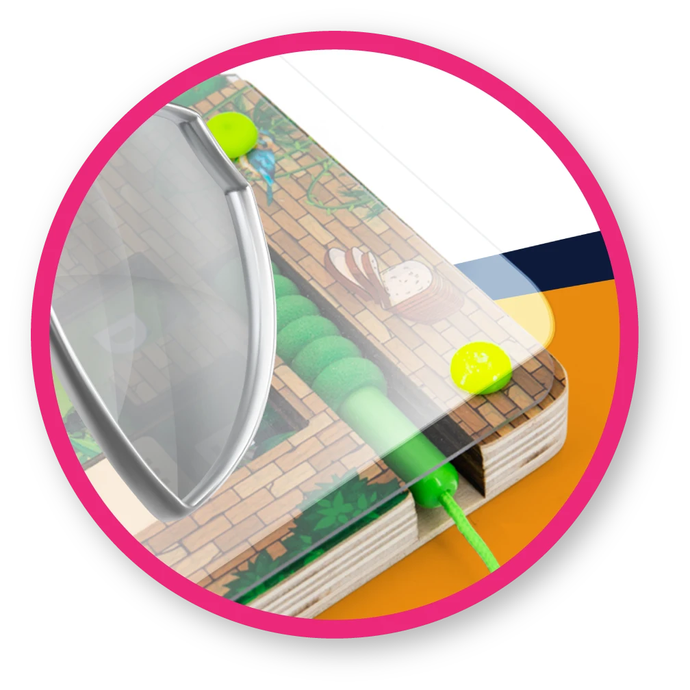 The beautifully crafted wooden maze board features a vibrant jungle design and includes magnetic alphabet pieces that can be moved around the board using the magnetic pen. Children will enjoy guiding the letters through the maze to spell words, enhancing their fine motor skills, hand-eye coordination, and problem-solving abilities.